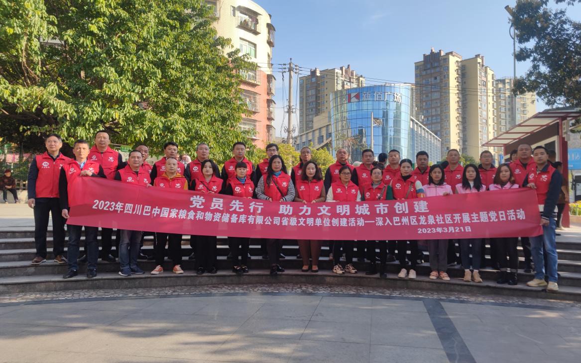 為充分發(fā)揮黨員先鋒模范作用,弘揚(yáng)志愿精神,助力全國(guó)文明城市創(chuàng)建,3月21日,糧儲(chǔ)公司黨總支走進(jìn)巴州區(qū)龍泉社區(qū)開展“黨員先行·助力文明城市創(chuàng)建”主題黨日活動(dòng)。